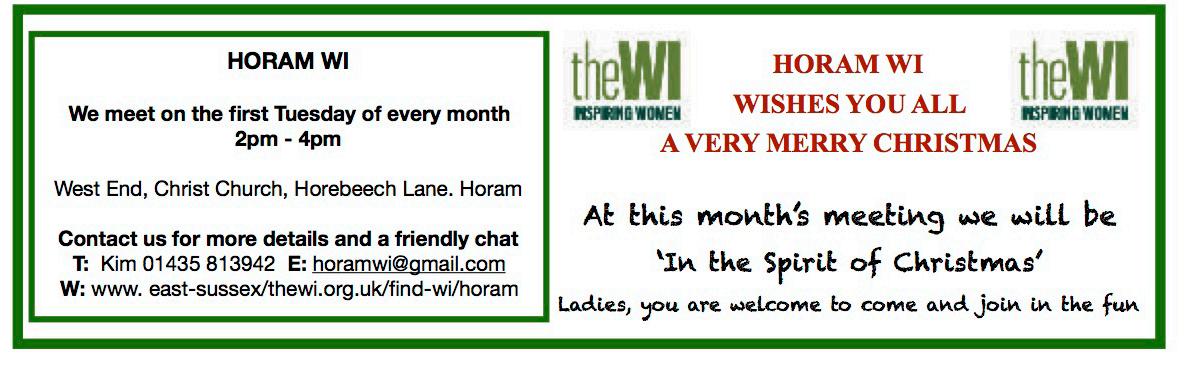 Horam Village Hall. For hire or information call Angela Wood on 01435 813295. Horam WI, Kim Dunn, 01435 813942.