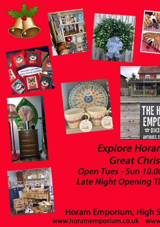 1st Dec, Horam Emporium, High Street, Horam, Late night Christmas shopping event, open til 9pm. See page 24 for more details.