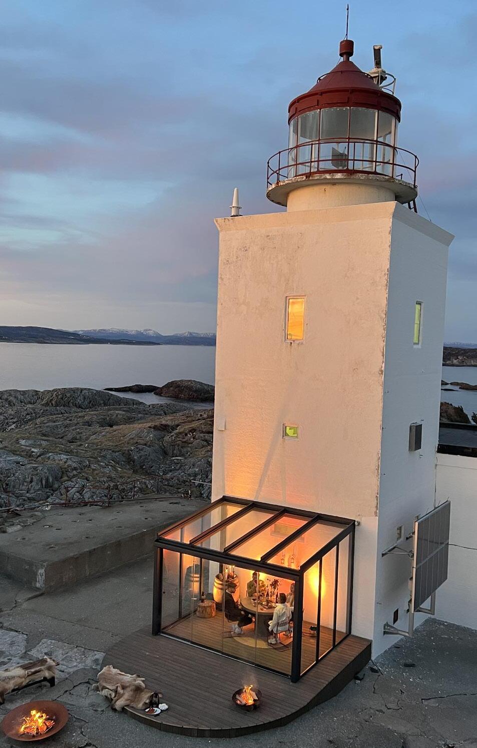 Langt ute i havgapet, på et av Norges mest værharde steder; der bølgene er mange meter høye og slår de sterke bergene glatte. Der vinden river i stykker alt på sin vei og der regnværet pisker med så stor kraft at bygninger smuldrer – akkurat der har vi montert en utestue.