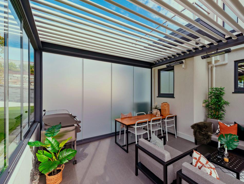 Dukpergola Lamellpergola Lamellpergola med innglassing