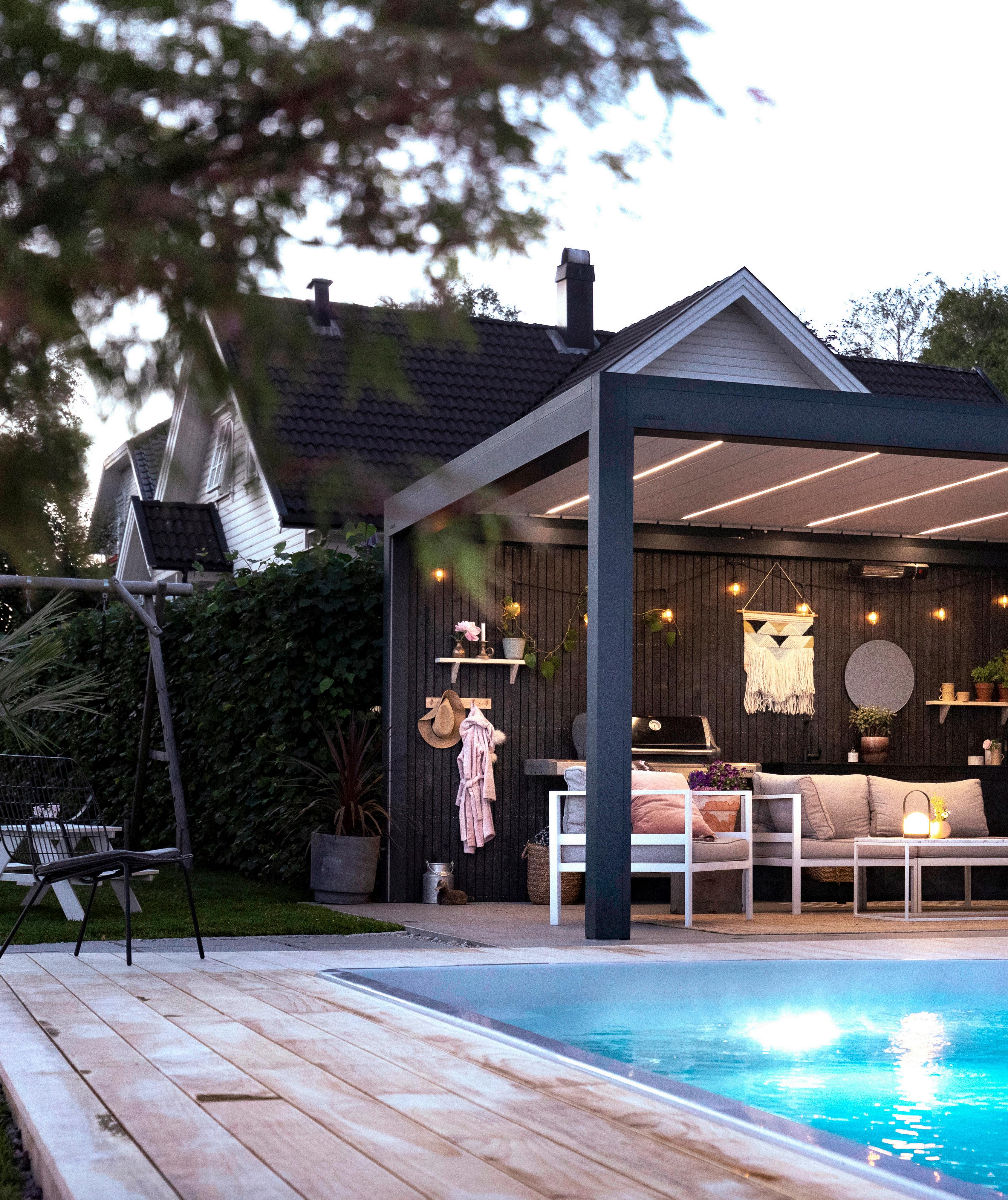 - Etter at pergolaen kom opp har den vært i bruk i hvert fall hver helg! Vi har fått en ny, ekstra stor stue, sier Jamina.