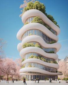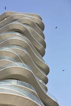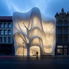 The design mimics the flow of natural forms, like a shell or a vine. Creating a sense of harmony between the building and its environment. The sleek curved exterior and the open, flowing interior spaces give it a contemporary feel. Making it stand out and adds to its overall beuaty.