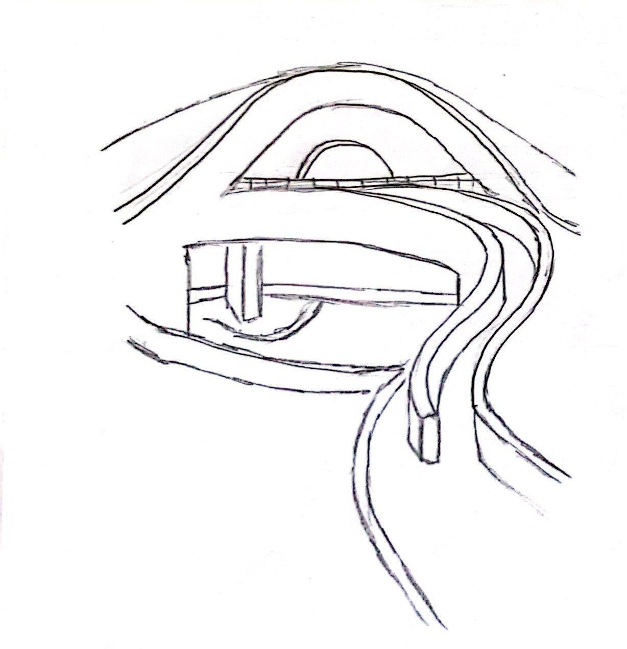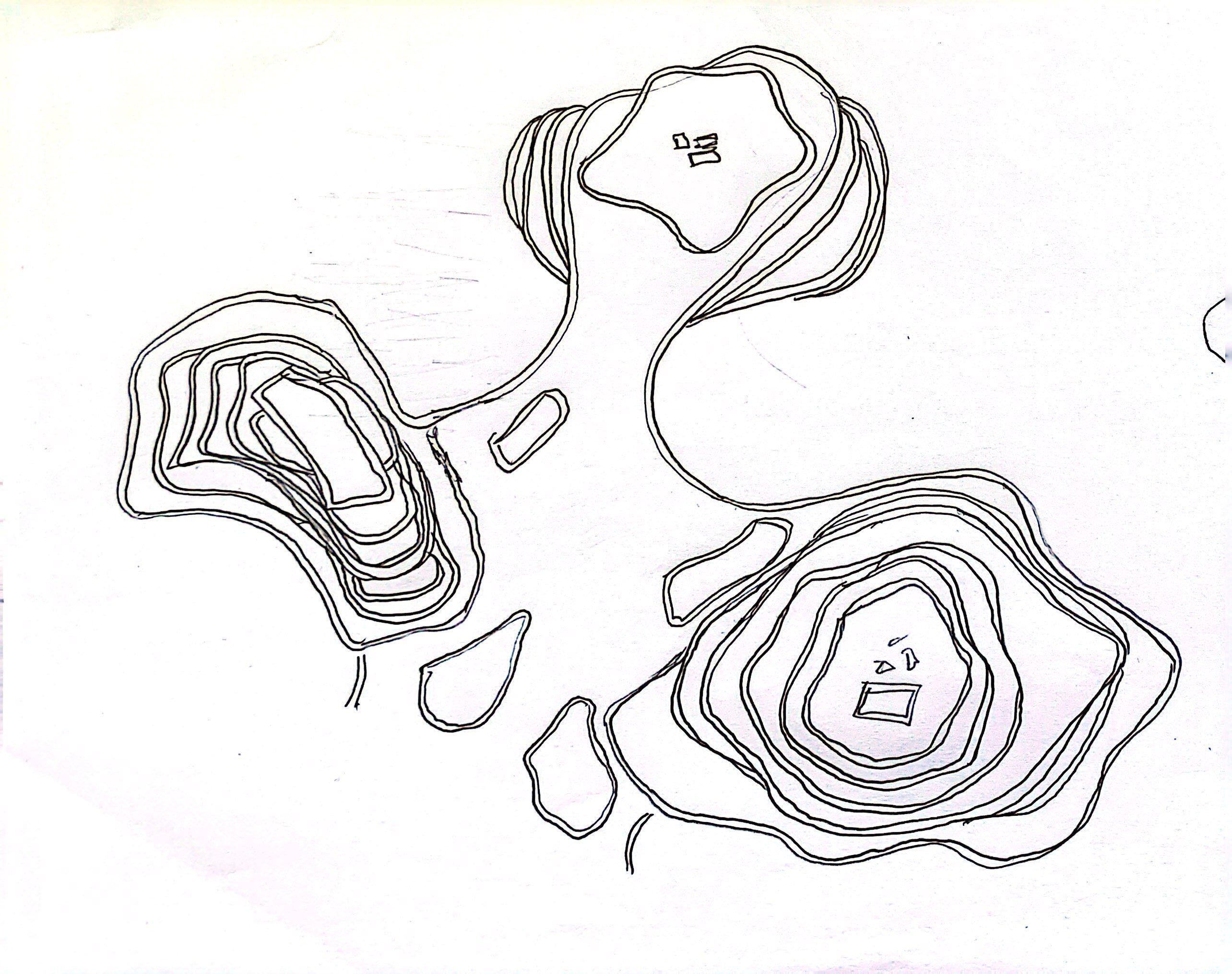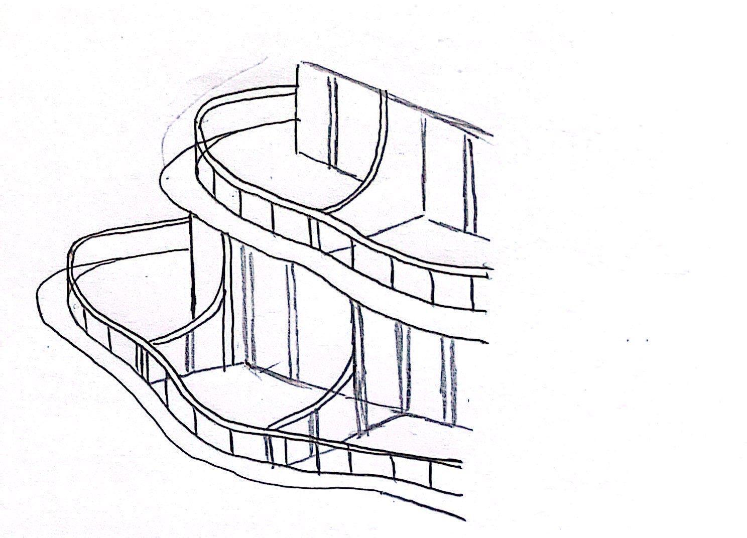 Holes and curved openings that puncture the roof creating skylights and open courtyards below.