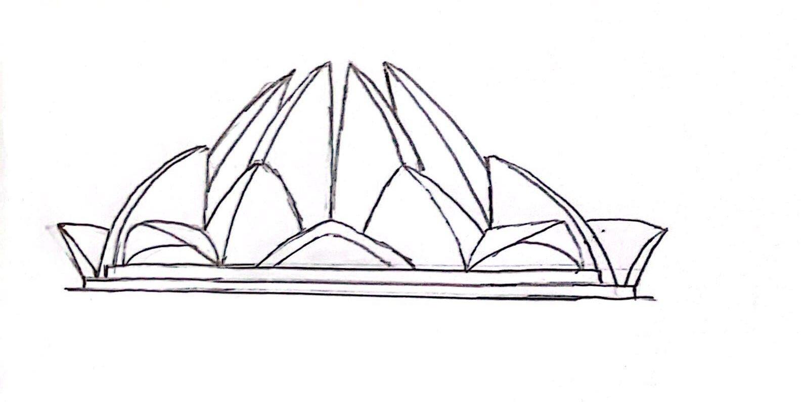 The structure is composed of the three ranks of nine petals each, springing from a podium which elevates the building above the surrounding plain. The first two ranks curve inwards, embracing the inner dome and the third layer curves outwards to form canopies over the nine entrances. The temple is constructed primarily by concrete and clad in Grecian marble.