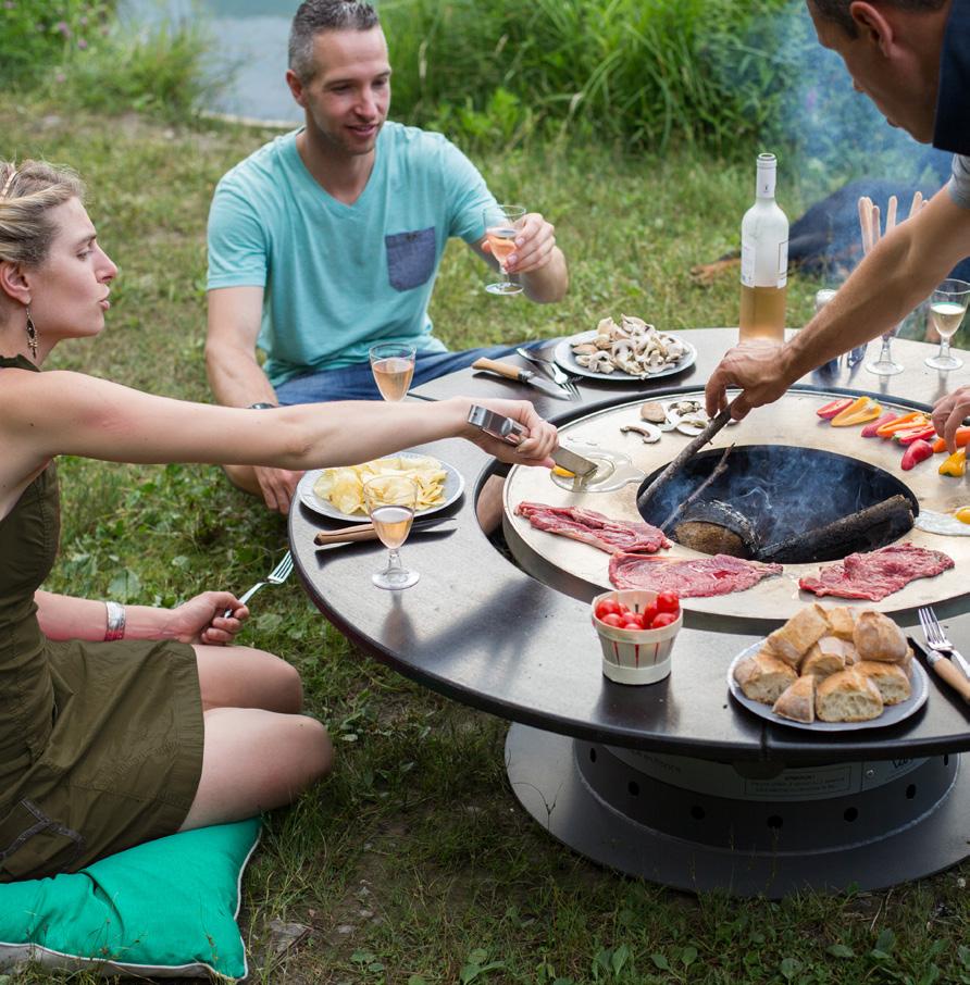 Lieben Sie auch dieses einzigartige Erlebnis draußen zu essen? Mit einem VULX MAGMA oder FUSION Grilltisch steht das Kochen selbst im Mittelpunkt der Mahlzeit. Ob Sie nun Essen, das über einem offenen Feuer oder einem Holzkohlegrill zubereitet wurde, oder stattdessen den Komfort eines Gasgrills bevorzugen, Sie werden großartige Essenserlebnisse haben, an denen jeder teilhaben kann. Die Grilltische sind in verschiedenen Höhen erhältlich und Sie können zwischen Einsätzen für Holzkohle oder Gas wählen. Diese sind separat erhältlich. Die Grilltische können leicht von einer Verbrennungsart auf eine andere umgestellt werden.