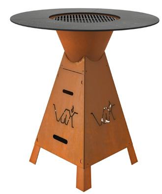 De collectie is ontworpen in cortenstaal, dat door blootstelling aan weer en wind een prachtig en werkelijk uniek roestachtig uiterlijk krijgt. De twee grilltafels zijn ook verkrijgbaar met zwart gelakt staal.