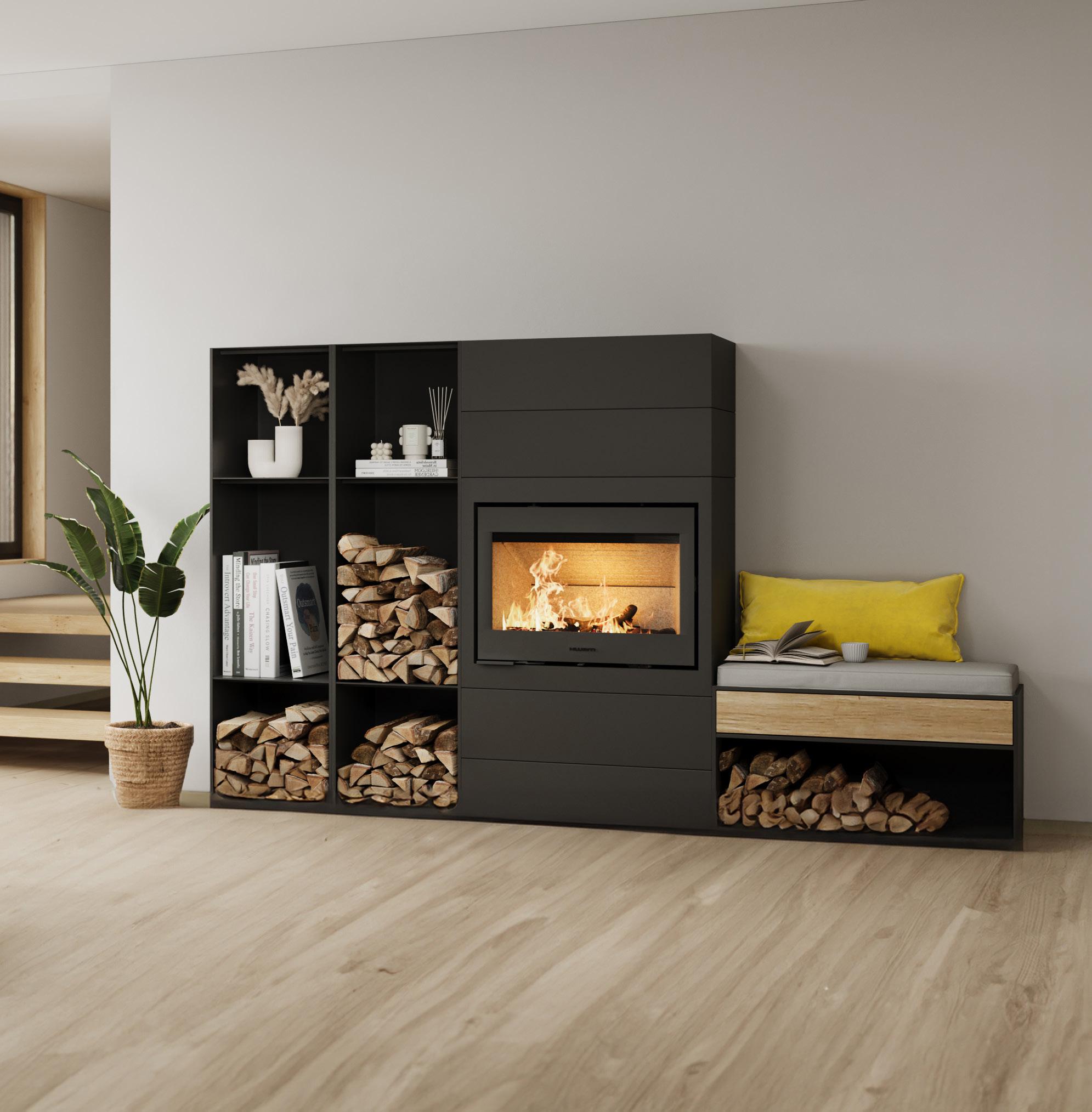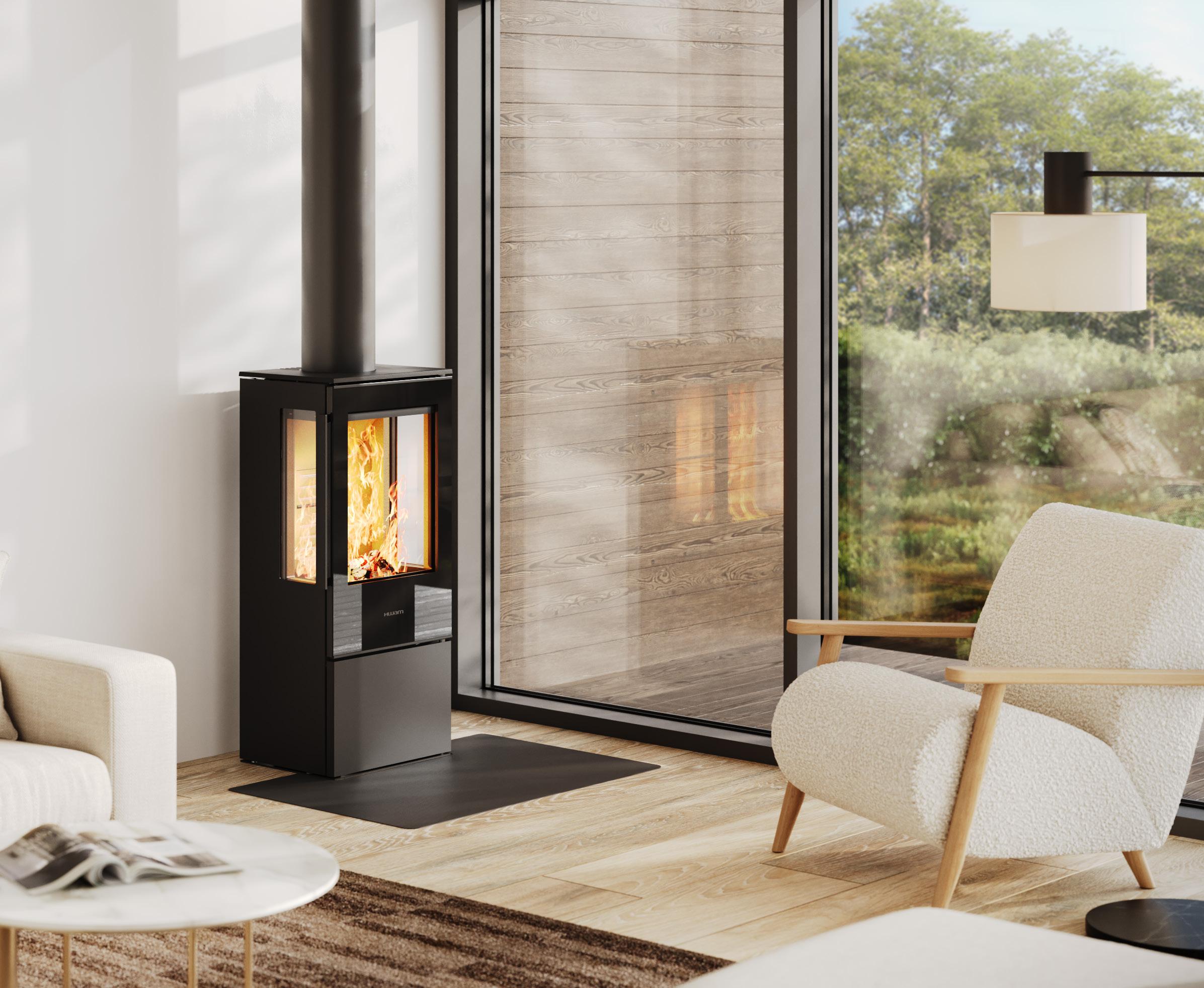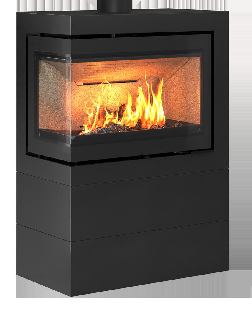 Välj till exempel en vägghängd, fristående eller moduluppbyggd modell. Välj en modell med eller utan sidoglas. Skapa ett unikt utseende med stenbeklädnad.