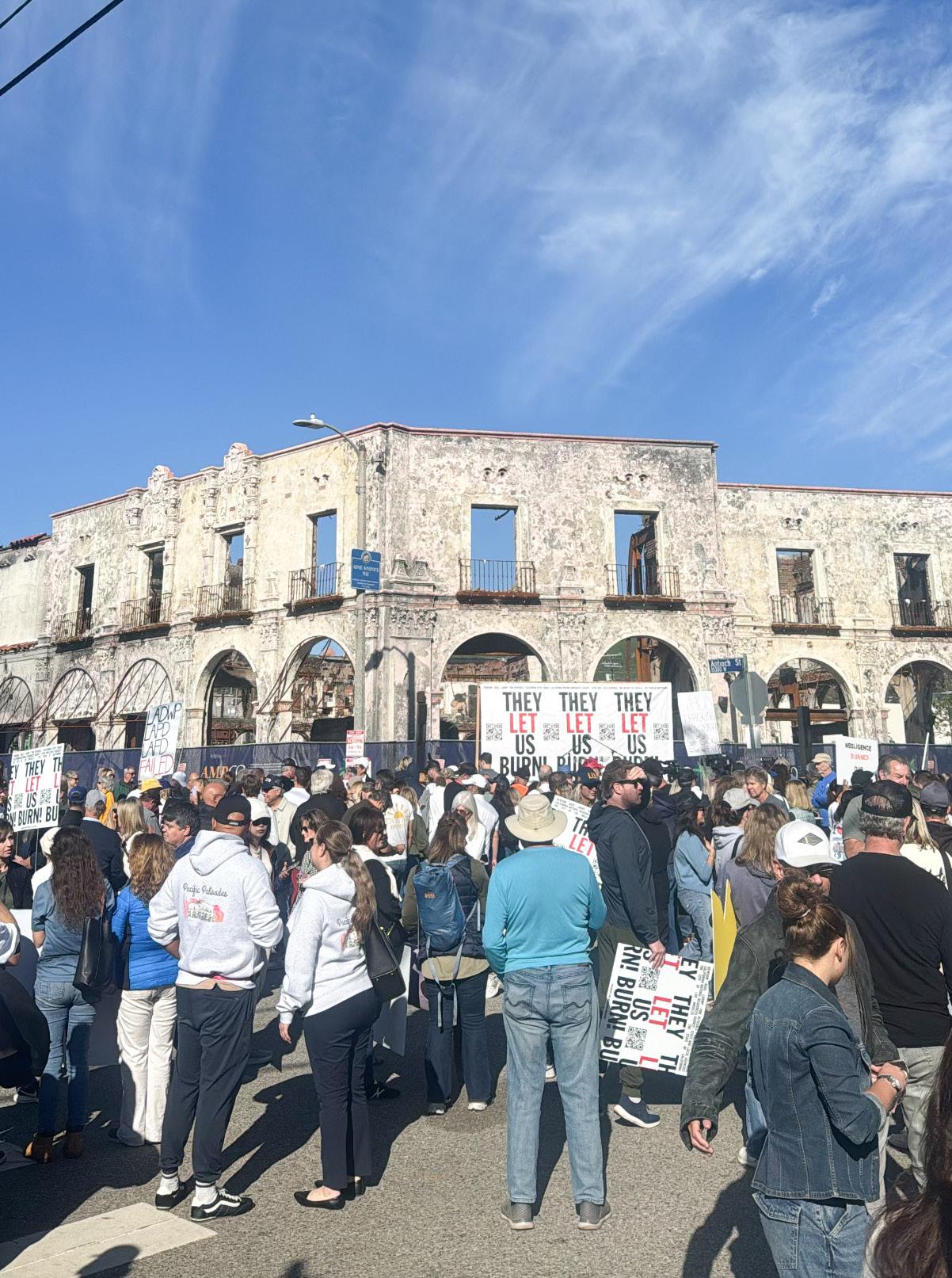 “My husband and I were at home when our power had gone out,” Cardin said. “Then, just off in the near distance, we could see that the mountains were completely on fire. We made the executive decision at that point to evacuate. We lived in the part of Altadena west of a street called Lake, which is traditionally a redlined neighborhood. It’s historically a lower–income neighborhood, and not unrelatedly, anyone west of Lake never got an evacuation notice. So, we didn’t evacuate because we got a notice. We just evacuated because it felt like the smart thing to do.”