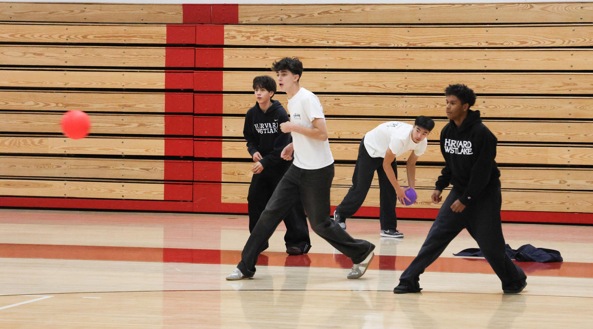 DODGEBALL TOURNAMENT: Ashton Oaks-Terrell ’28, Jordan Kay ’28, Brandon Hsu ’28 and James Salazar ’28 of team Silent Impact played against team Naomi on November 3rd for their team's first round. Their team won and will advance to the next round.