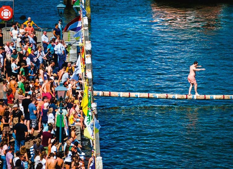 Onder prima weersomstandigheden en grote belangstelling werd zaterdag 12 augustus voor de 45e keer het Nederlands Kampioenschap Sprietlopen in Pu ershoek gehouden. Met zo’n 125 deelnemers die over de spriet - de eerste ronde over de balk zonder zeep, de tweede ronde ingesmeerd met zeep - de overkant van de haven probeerden te halen. Foto: Jeffrey Groeneweg