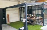 450x250 cm - glasdak - incl. dichte aluminium zijwand, onderdakzonwering en led-spots.