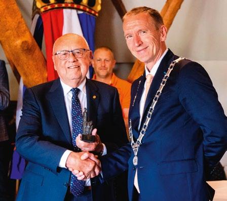 Zaterdag 14 september jl. kreeg de heer Rook Belder van burgemeester Erik van Heijningen het bronzen beeld ‘Er met kop en schouders bovenuit steken’ cadeau.
