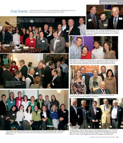 Connect with alums in your city by attending an HWS Club event! Visit www.hwsalumni.com for upcoming event information.
