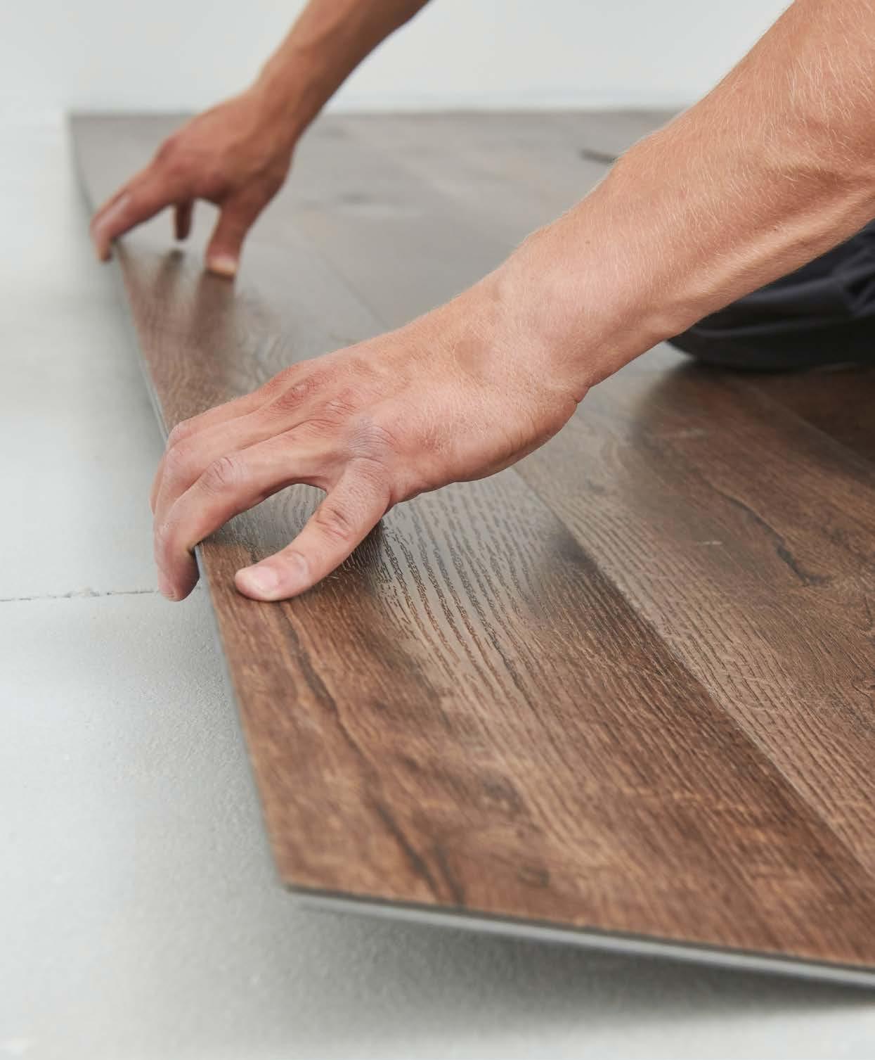 3. Do not install fixed fixtures such as kitchen units, built-in cupboards, washing machines or similar on the installed design flooring. The design flooring must be decoupled using an expansion joint.