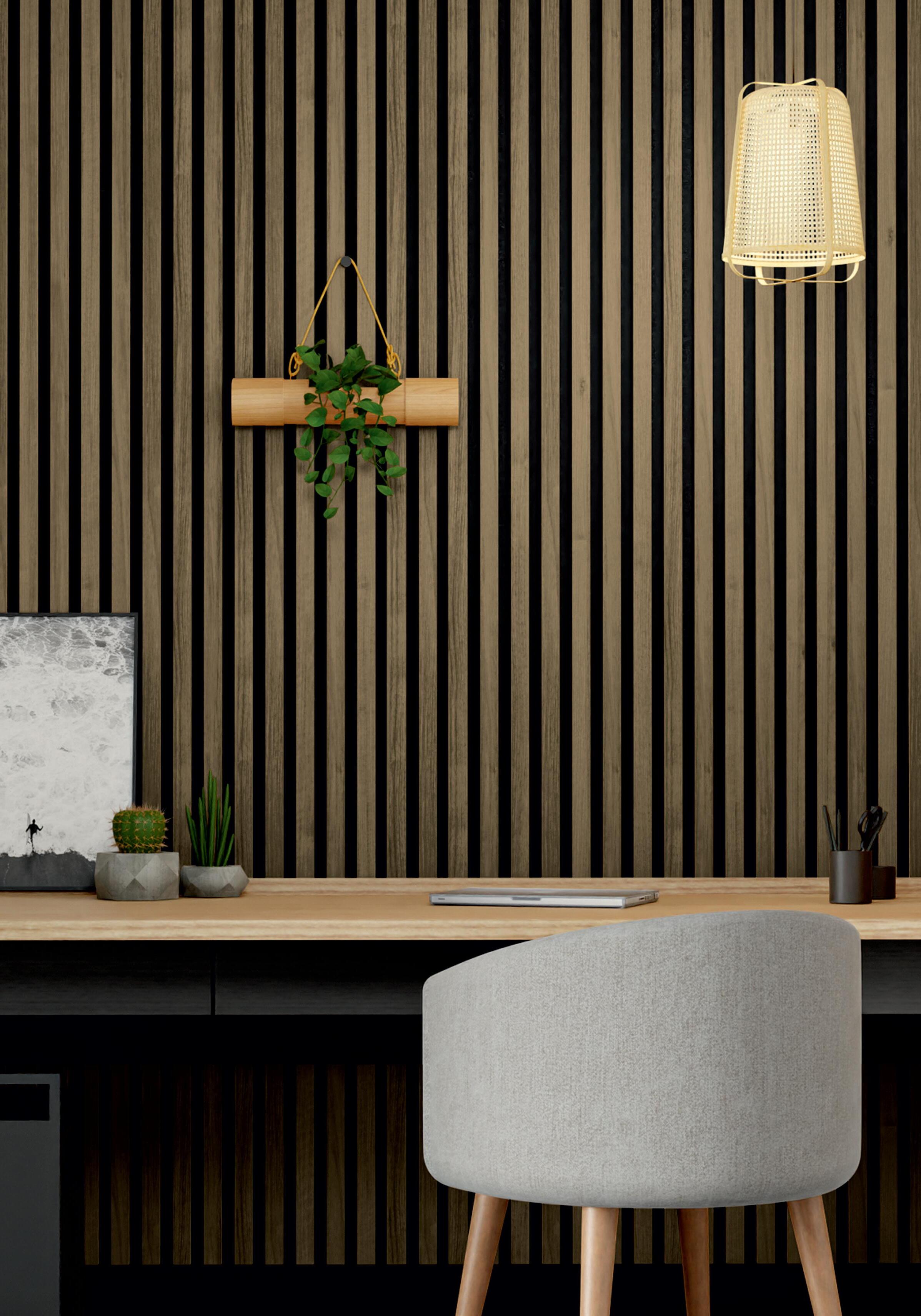 Mit Wallution Fast setzen Sie moderne und aussergewöhnliche Akzente in all Ihren Räumen. Die hochwertige Oberfläche aus gebürstetem Echtholz ist FSC ®zertifiziert (C017145) und recycelbar (Holzanteil). Sie verleiht den Holzlatten nicht nur ein ansprechendes Aussehen, sondern auch eine nachhaltige Qualität. Der 8 mm starke Filz-Akustikträger verleiht den Paneelen ihre effektive schallabsorbierende Wirkung. Mit selbstklebender Rückseite lässt sich das Produkt bis zu dreimal schneller montieren, was sowohl Zeit als auch Geld spart. Es haftet zuverlässig auf allen Untergründen.