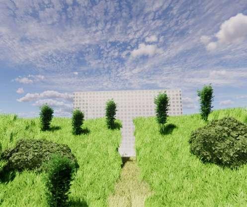 Sustainable Architecture Waste Management Ecological Integration Active Transportation Water Conservation Community Engagement Carbon Neutrality Resilience and Adaptation The design harnesses building and landscape elements to form a negative pressure zone at the center, optimizing passive cooling. Utilizing major and minor winds, it fosters airflow for effective cooling, enhancing comfort while minimizing reliance on mechanical systems. The architectural design maximizes sunlight utilization and natural shading by integrating buildings and landscape elements as effective screens. Strategic placement and orientation allow sunlight to illuminate interiors, reducing reliance on artificial lighting. Landscape features provide shade, enhancing comfort and sustainability while seamlessly blending with the built environment. The predominantly flat site,