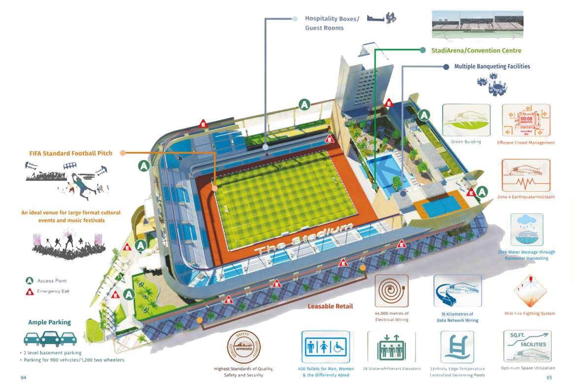 Site details Site area : 819858.08 Msq 202.59 Acre LOCATION : 48XW+2V, Athani, Kerala 683102 Cochin Sports City, Near cochi international airport District: Ernakulam Taluk: Aluva, Chengamnad vilaage Landmark : Kochi international airport NEARBY SPORTS FACILITIES Nearest sports facilities 1) Palaprassery Ground 7 Min (3.0 Km) Via angamaly - manjaly rd/athani - paravoor rd 2) PFWA Cultural & Sports Complex 19 Min (10.4 Km) Via kalady - aluva rd and nh544 3) RSCC Indoor Stadium 22 Min (15.4 Km) Via nh544 4) Jawaharlal Nehru International Stadium Kochi 30 Min (22.5 Km) Via nh544 5) Dr Ambedkar Stadium 35 Min (25.4 Km) Via nh544W SERVICES Airport - 9 min (5.8 km) Bus stand - 5 min ( 2.7 km) Railway station - 17 min (9.7 km) Metro - 12 min (7.9 km) Fire station - 15 min (8.4 km) Police station - 5 min (1.9 km) Hospital - 11 min (5.9 km) Hotel - AS aiport inn 5 mins(1.8 km) Petrol pump - 6 min (1.4 km) electrc charging - 15 min (9.2 km) Palaprassery Ground ) RSCC Indoor Stadium PFWA Cultural & Sports Complex Jawaharlal Nehru International Stadium Dr Ambedkar Stadium N Situated amidst a bustling urban landscape, the site spans across a sprawling expanse, boasting dimensions of 209.50 meters in length and 150.54 meters in width. Predominantly characterized by level terrain, the site presents subtle undulations and minor rises in select areas, contributing to its dynamic topography. Embraced by a network of roads and residential neighborhoods, the site enjoys connectivity and accessibility from all directions, fostering a sense of integration within the surrounding urban fabric. To the southwestern periphery lies the majestic Periyar Lake, a prominent water body that adds a picturesque backdrop to the site, infusing it with natural serenity and scenic allure. Meanwhile, the primary access points and NH 54, a vital arterial road, flank the eastern boundary, facilitating seamless connectivity and ease of transportation. Notably, the site sits at a slightly lower elevation, approximately 3 meters below the roadside level, ensuring efficient drainage and mitigating the risk of waterlogging. This favorable aspect enhances the site’s suitability for development, offering a stable foundation for architectural interventions and construction activities. In essence, the site’s strategic location, expansive dimensions, gentle topography, and favorable environmental conditions make it a prime canvas for a sports hub and innovative design solutions. Notably, the site sits at a slightly lower elevation, approximately 3 meters below the roadside level, ensuring efficient drainage and mitigating the risk of waterlogging. This favorable aspect enhances the site’s suitability for development, offering a stable foundation for architectural interventions and construction activities. In essence, the site’s strategic location, expansive dimensions, gentle topography, and favorable environmental conditions make it a prime canvas for architectural exploration and innovative design solutions. Its harmonious juxtaposition amidst urban amenities and natural elements presents a compelling opportunity for the creation of a vibrant, sustainable built environment that seamlessly integrates with its surroundings while offering a distinctive identity and enriching the urban experience. SECTIOPNS S O T W • Competition: Cochin Sports City may face competition from existing sports facilities and entertainment venues in the region, impacting its market share and attractiveness. • Public Perception: Negative perceptions or misconceptions about sports cities, such as noise pollution or traffic congestion, could deter potential visitors and investors. • Regulatory Challenges: Changes in government policies, regulations, or taxation could increase operational costs and administrative burdens for Cochin Sports City. • Natural Disasters: Vulnerability to natural disasters such as floods, cyclones, or earthquakes poses risks to infrastructure, safety, and continuity of operations. • Global Pandemics: Outbreaks of infectious diseases, like the COVID-19 pandemic, can disrupt travel, events, and gatherings, impacting revenue and operations. • All the basic services within 25 km radius of site • access from 4 directions to site • better transportation routes and connectivity • Potential for Tourism: With its comprehensive sports facilities and strategic location, Cochin Sports City has the potential to attract tourists interested in sports events and activities. • Sporting Events: Hosting national and international sporting events at Cochin Sports City can enhance its reputation, visibility, and revenue generation. • Collaborations: Collaborating with sports federations, associations, and international organizations can bring expertise, funding, and networking opportunities to Cochin Sports City. •Health and Wellness Programs: Offering health and wellness programs, training camps, and recreational activities can attract diverse audiences and promote a healthy lifestyle. Surrounding Residential Areas: The site is surrounded by densely packed residential areas in all directions, creating a sense of community and urban integration. The scattered settlement pattern reflects the diverse socio-economic backgrounds and lifestyles of the residents in the vicinity. Commercial Stores: Adjacent to the residential zones are commercial stores, offering convenience and accessibility to everyday amenities for the local population. These commercial establishments contribute to the vibrancy of the neighborhood and serve as focal points for social interaction and commerce. Vegetation: The vegetation surrounding the site predominantly consists of coconut trees and native plants, shrubs, and trees. The lush greenery adds to the natural ambiance of the area, providing shade, aesthetic appeal, and ecological benefits to the surroundings. River Body and Small Streams: The site is situated near the Periyar River, a significant water bod