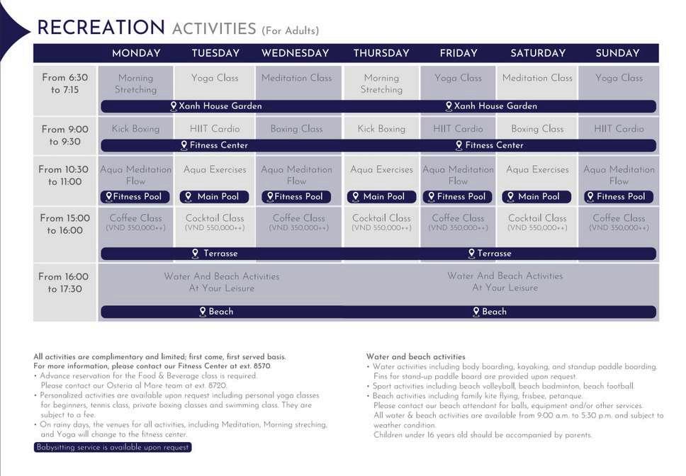 Hệ thống hồ bơi của chúng tôi, nổi bật với thiết kế ấn tượng và tầm nhìn hướng biển tuyệt đẹp, đã vinh dự được công nhận là “Hồ bơi khách sạn đẹp nhất Việt Nam”. Dù là một buổi bơi thư thái với khung cảnh đại dương hay những giây phút vui chơi sảng khoái bên gia đình, hồ bơi của chúng tôi mang đến sự thư giãn cho mọi du khách.