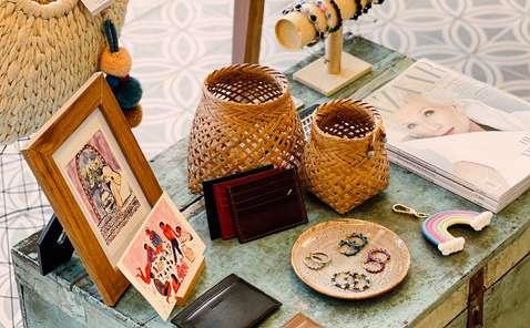 bày các sản phẩm thủ công, bao gồm vải dệt truyền thống, trang sức làm thủ công và các món đồ trang trí nội thất tinh xảo.