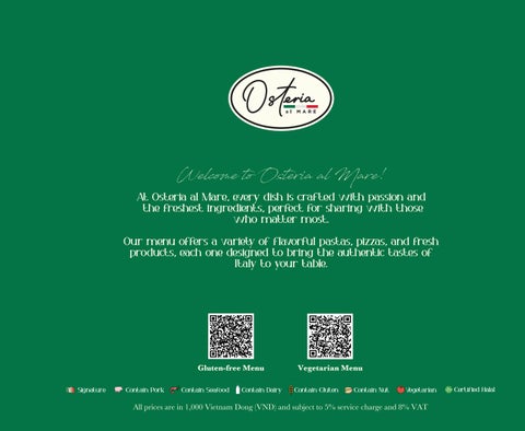At Osteria al Mare, every dish is crafted with passion and the freshest ingredients, perfect for sharing with those who matter most. Our menu offers a variety of flavorful pastas, pizzas, and fresh products, each one designed to bring the authentic tastes of Italy to your table.