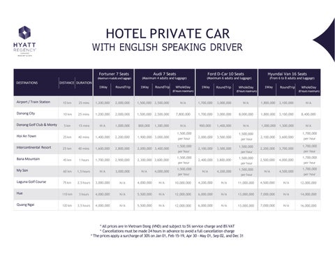 • Advance reservation for the Food & Beverage ( ) and chargeable activities ( ) are required 24 hours in advance and confirmed.