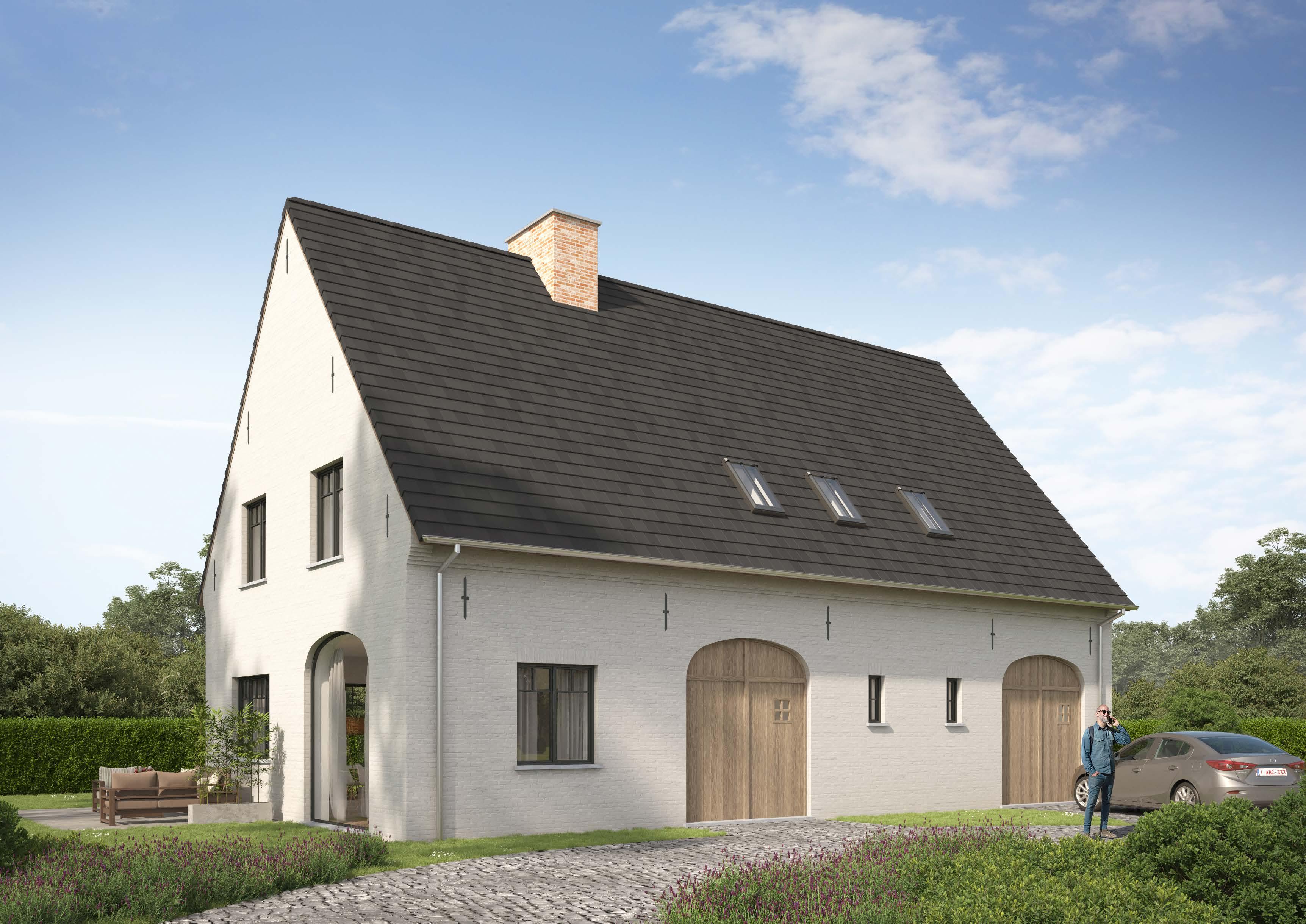 • De ramen en deuren zijn in PVC, buitenzijde in zwart (RAL9011), wit binnenin. Isolerende dubbele beglazing Ug1.0