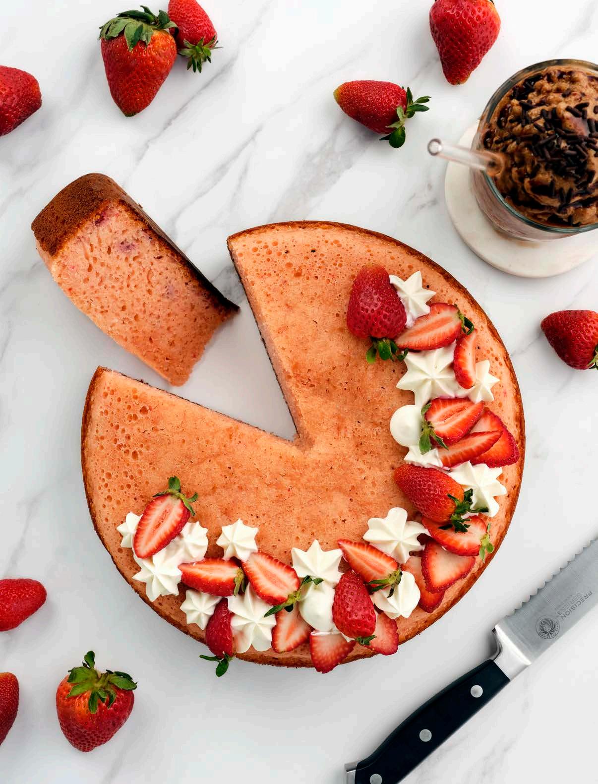 7 Decorar el pastel con el betún y fresas.