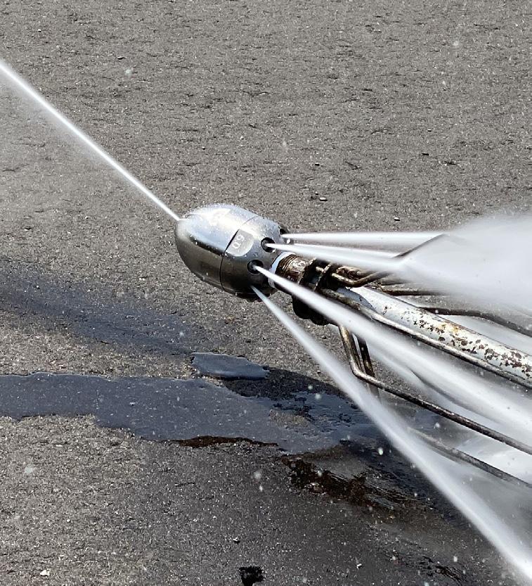 The Reaper simultaneously clears in cleans with a powerful rotating front stream the cuts through blockages and back jets that propel the nozzle forward and flush the pipe.