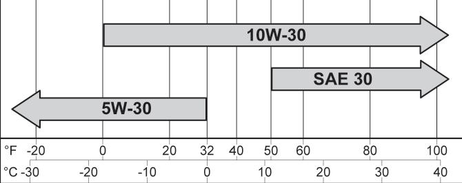 We recommend use of Kohler oils for best performance. Other high-quality detergent oils (including synthetic) of API (American Petroleum Institute) service class SJ or higher are acceptable. Select viscosity based on air temperature at time of operation as shown in table below.