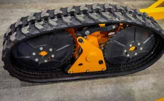 RUBBER TRACKS FOR ADDITIONAL TRACTION AND STABILITY.