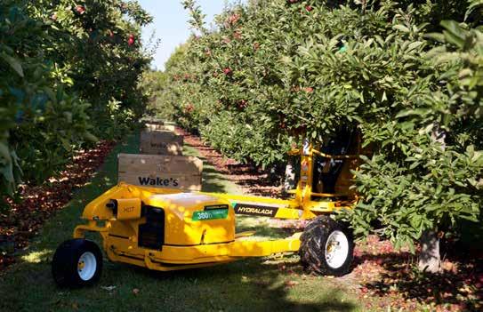 HYDRAFORK BIN SHIFTER - A popular option on orchards for shifting a full bin of fruit independent to a tractor forklift. The operator can keep the bin in close vicinity when picking. For narrow rows the full bin can be turned 180º within the row so the machine can get past the bin, left for the tractor forklift to collect