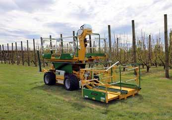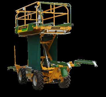 This mounts to the front adding an intermediate lift height for taller trees. The machine is proportionally controlled with four wheel steer and self guidance system. Simply set the machine on course and each person can carry out their work either side of the platform.