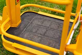 Standard includes three pedals in the floor of the platform. The centre pedal operates the lift and the two outside pedals operate the respective drive wheels.