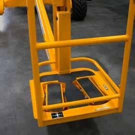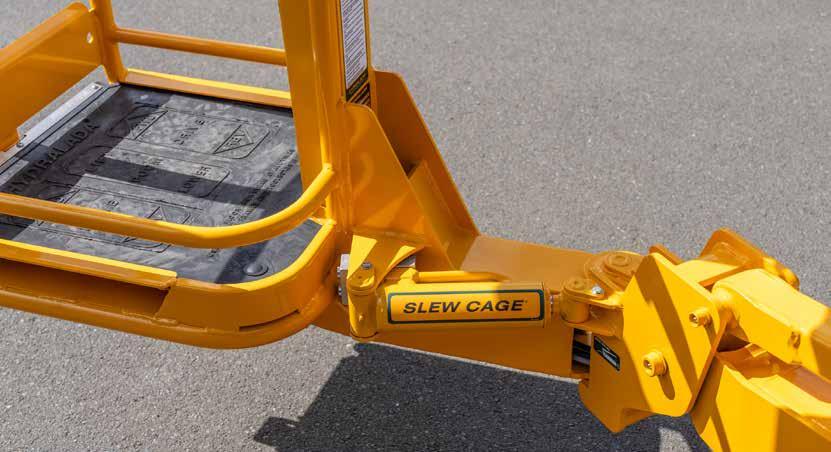 HYDRAULIC SLEW CAGE - Slews Platform Left/Right. The operator can slew the platform 45 degrees left or right of center without moving the chassis of the machine on the ground. A lever located in the front of the platform activates a hydraulic ram that significantly increases the working envelope.