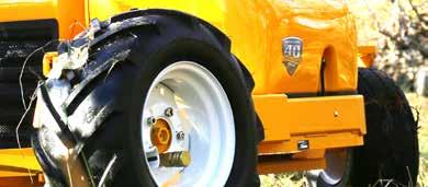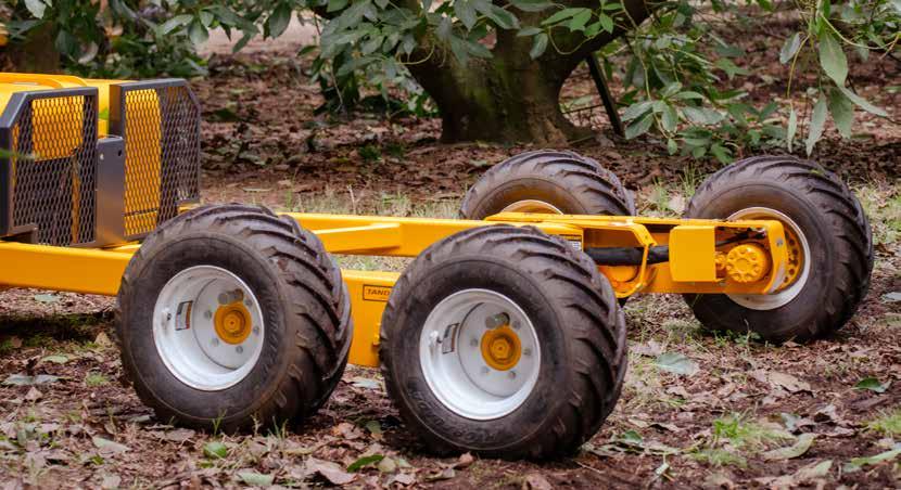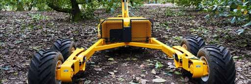 Steel tracks fit over the tandem four wheel drive and increase the machines traction. The additional weight also adds to the stability of the machine, ideal for working on steep orchards, and in rough ground conditions.