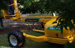 Hydralada® foot drive controls make the 300h Compact extremely versatile and nimble. The independent wheel drive allows the machine to turn on the spot in very tight spaces and it very quickly becomes an extension of the operator. With a 3.00m platform lift height, the machine has up to 5.00m working height, ideal for most pip and stone fruit orchards.