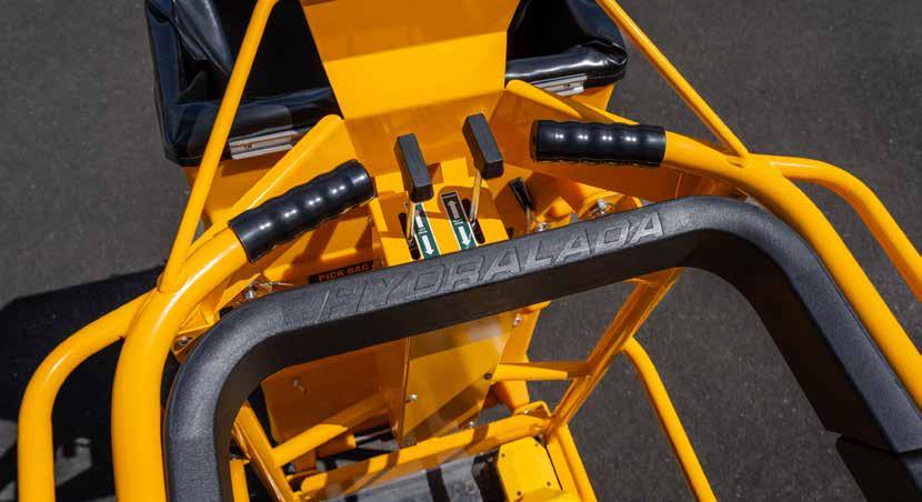 HAND CONTROLS - When hand controls are preferred to the standard Hydralada Three Pedal Control a simple Tiller Lever system located in the front of the operator’s platform is available. Two handle bars and two tiller levers (one for each drive wheel) makes this very safe and smooth to operate.