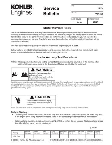 STARTER WARRANTY PROCEDURE