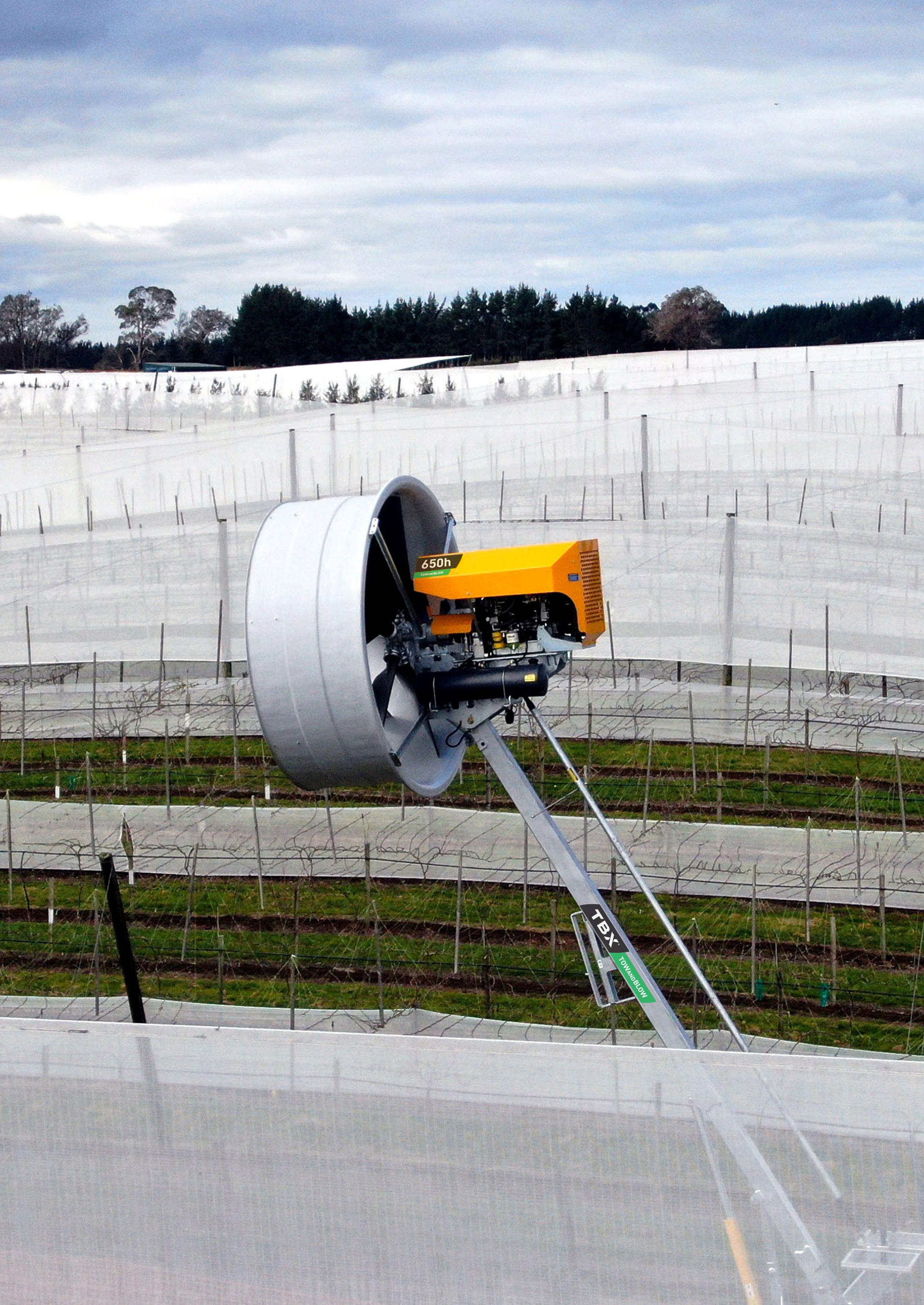 The TBX Tow and Blow 650h is an affordable and highly efficient frost fan. This machine has a unique fan design delivering effective frost protection for vineyards, apples, kiwifruit, cherries, citrus, blueberries, avocados and more - even when grown in valleys or on hillsides.