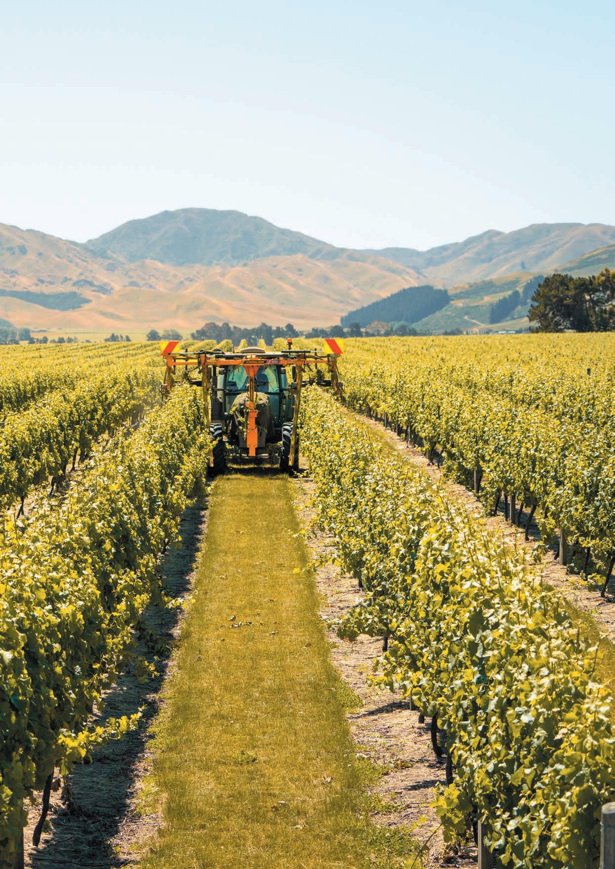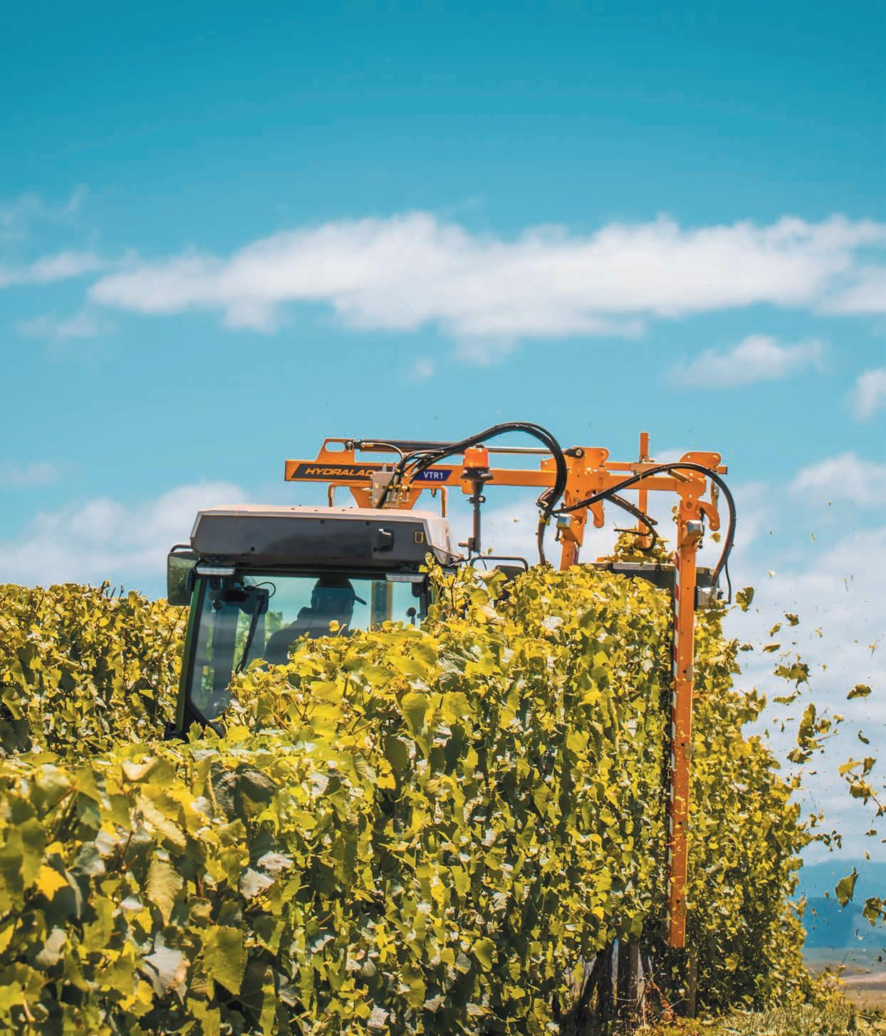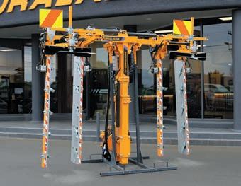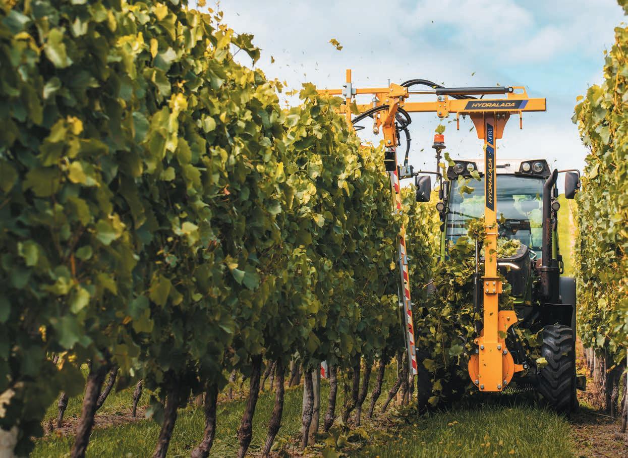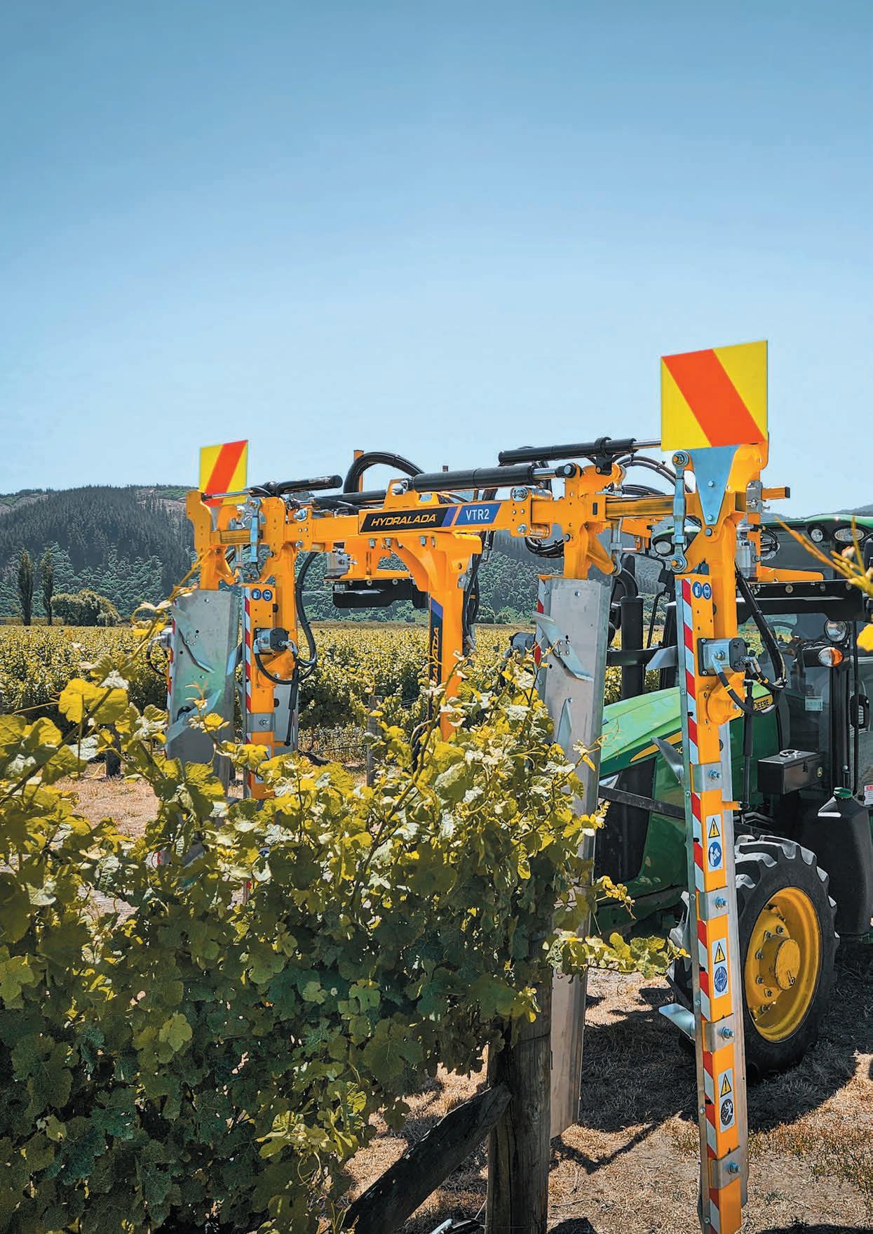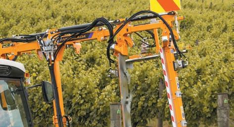 Double mast frame with hydraulic width adjustment makes it easy to adapt to suit different vineyards. Two vertical cutter boards can be adjusted and toppers moved independently.