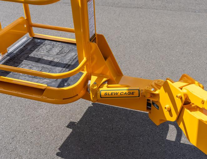 The operator can slew the platform 45 degrees left or right of centre without moving the chassis of the machine on the ground. A lever located in the front of the platform activates a hydraulic ram that significantly increases the working envelope.