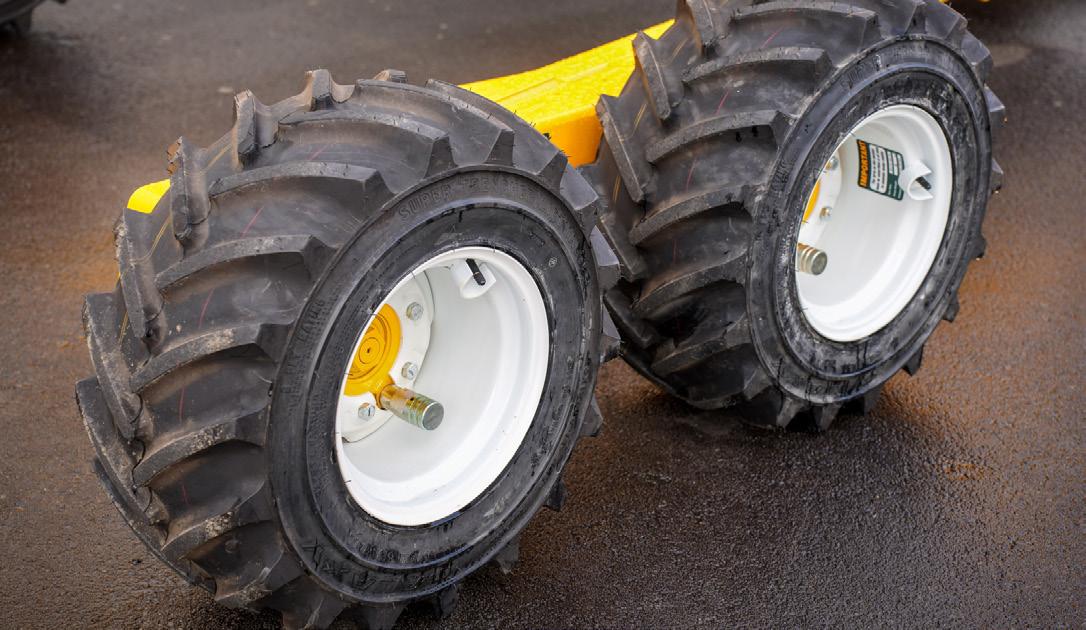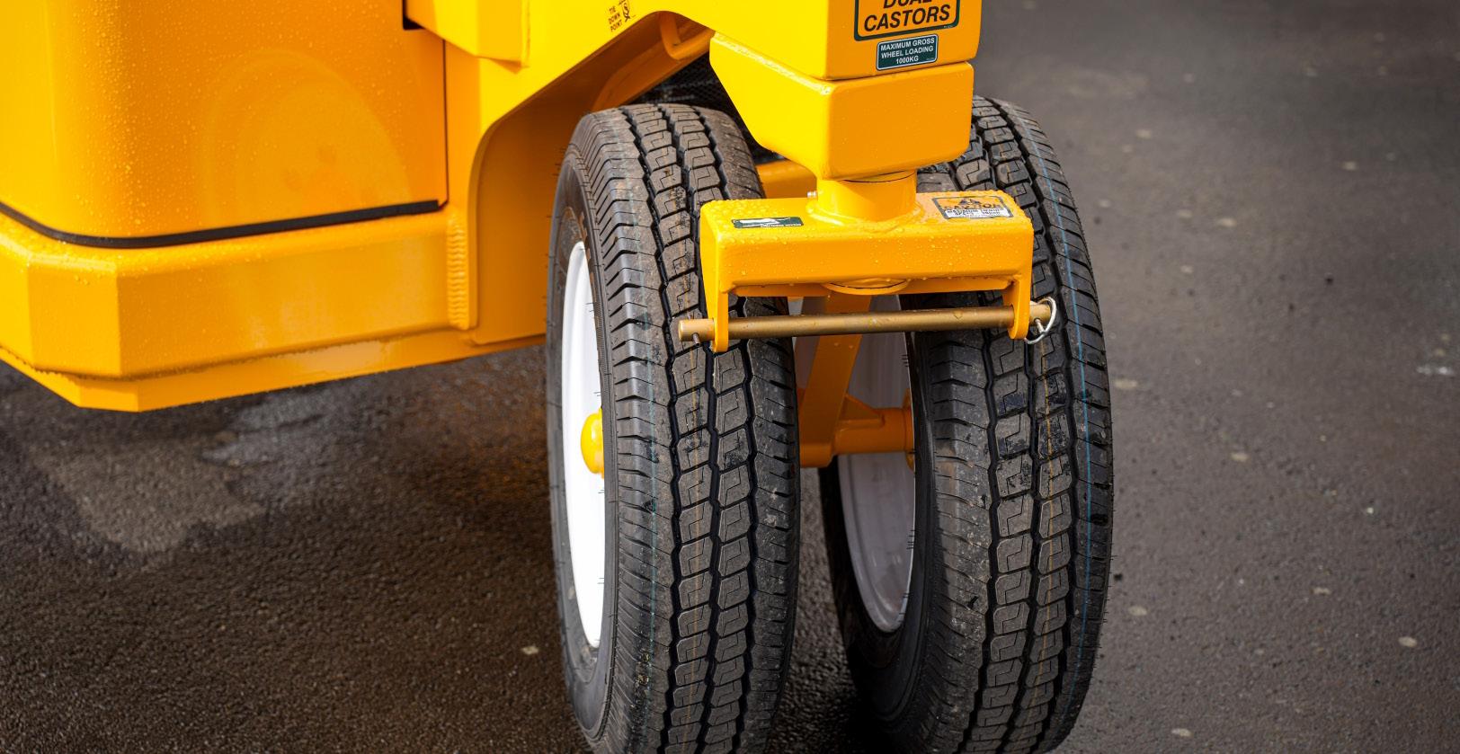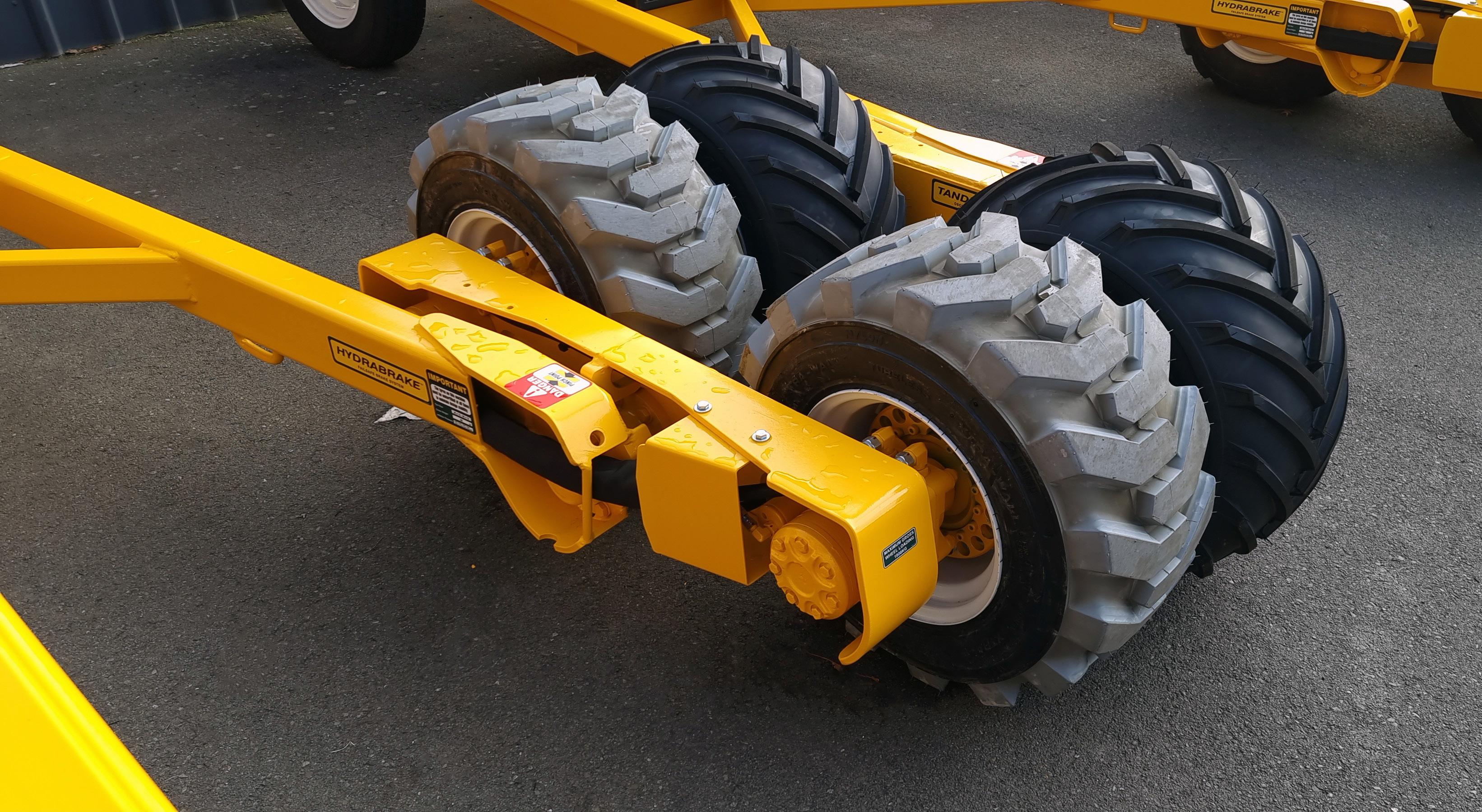 TWIN CASTOR REAR AXLE - These wheels are mounted on an oscillating beam to increase the machines stability. This feature is standard on some Hydralada models and available as an option on others in lieu of the single castor rear wheel.