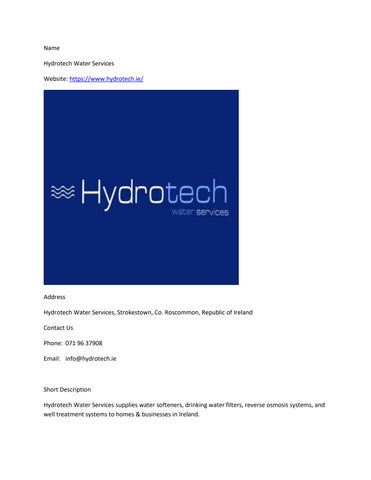 Name Hydrotech Water Services Website: https://www.hydrotech.ie/