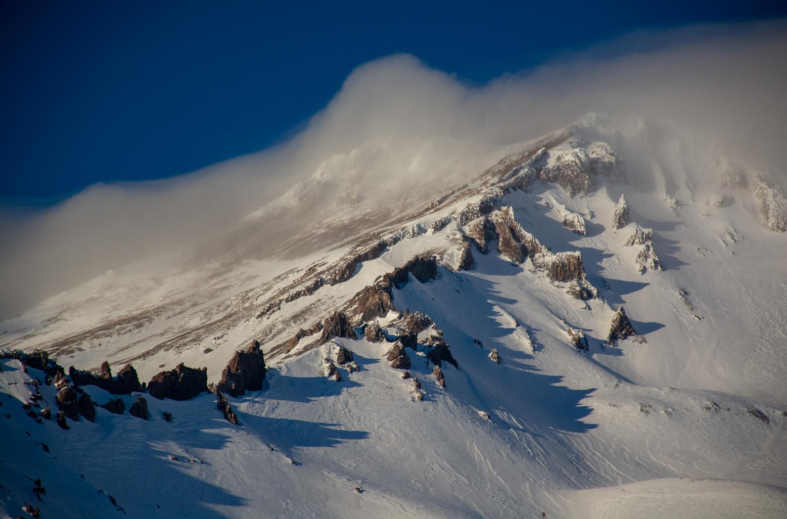 The most voluminous of the Cascade volcanoes (estimated volume: 84 cubic miles), Mount Shasta is a massive compound stratovolcano composed of at least four main edifices constructed over the last 590,000 years. Two of the main eruptive centers at Mount Shasta, Shastina and Hotlum cones, were constructed during the Holocene Epoch.
