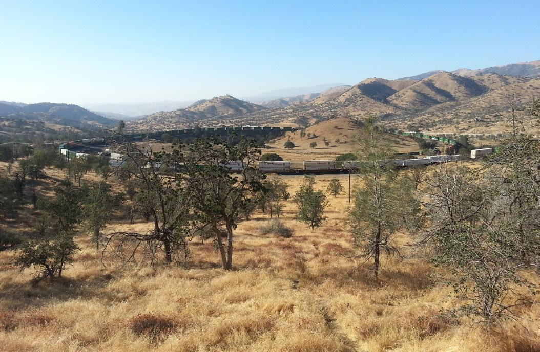 The Tehachapi Loop (Loop) is a famous spiral section of railroad through the Tehachapi Mountains in Kern County (Southern California). Designed by Southern Pacific Railroad’s (SPRR) Chief Engineer William Hood and built by Chinese laborers using hand tools, black powder, and mules between 1874-1876, the Loop is considered an engineering marvel for its ability to allow trains to traverse the steep Tehachapi Mountains.