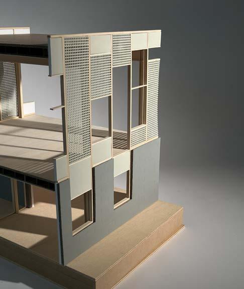 The concept evolved from a light box on top of a heavier first level to a light box that weaves into the mass below.