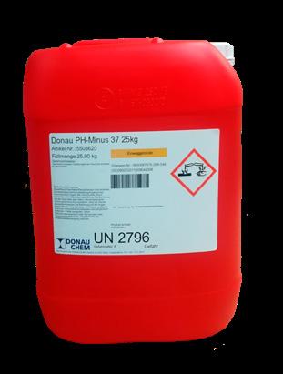 Donau-pH MINUS für gewerbliche Schwimmbäder: PH MINUS ist ein hochwirksamer flüssiger pH Senker für Beckenwasser auf Basis von Schwefelsäure 37 %.