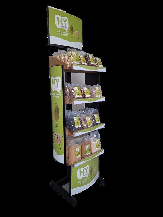 • Wij voorzien duurzame displays ter promotie van “HY by Hygiena”. U ontvangt hiervoor apart de informatie via uw vertegenwoordiger of na contactopname met onze klantendienst.