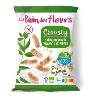100214 Bio Crousty gepofte snack op basis van boekweit en peper 75 g - 60% minder zout - 30% minder vet EAN-code: 3380380096488