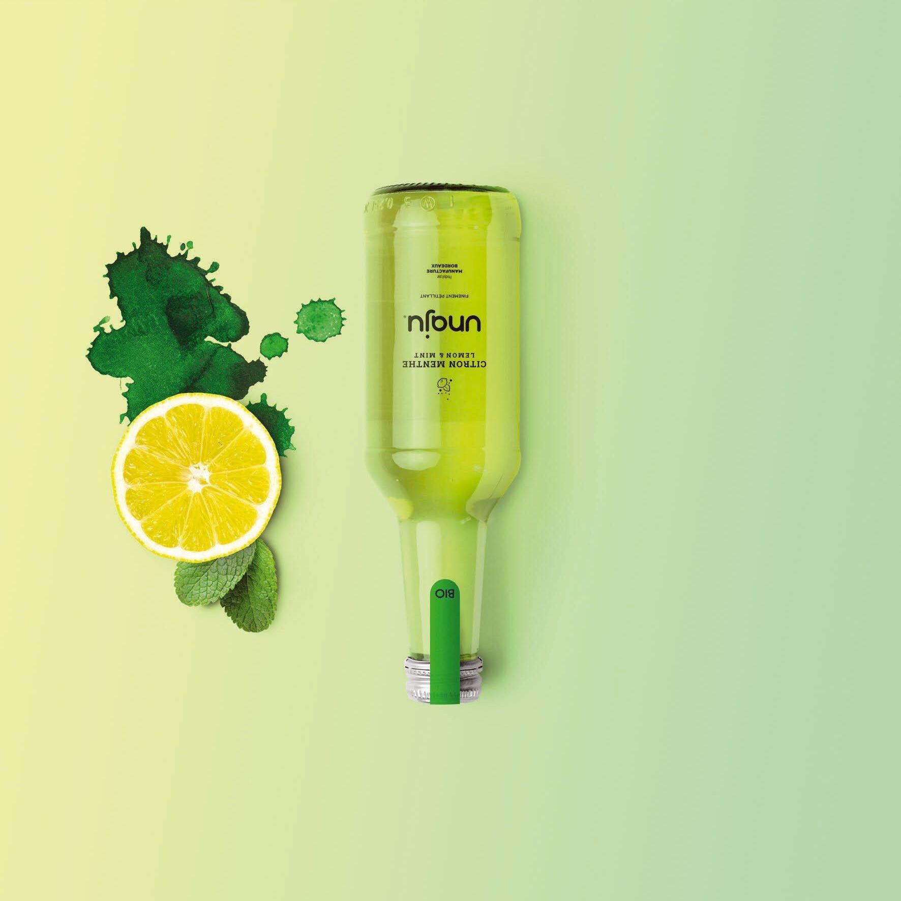 • In glazen recycleerbare fles